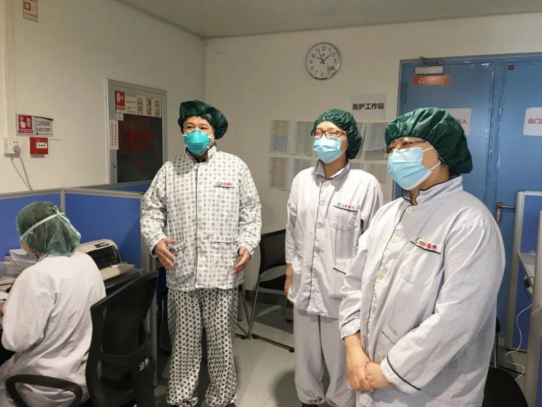 每次查房、更改诊疗方案、采集鼻咽拭子、做好每一位患者的交接班记录、穿脱隔离服等等已经是家常便饭,自己也渐渐融入到新的工作之中,还记得进疗区第一次正式穿防护服的那种紧张和焦虑,非常担心一个疏忽,让自己或者同志暴露于“污染”之中,因为这个时候不是个人问题,“蝴蝶效应”很可怕,每次进疗区查房同济中法院区的老师给以及同行的老师、同志大家互相帮忙,互相提醒,目的只有一个:安全第一!只有做好防护才能去救治患者。