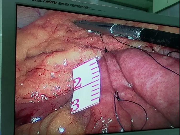 手术方法:在全麻腹腔镜下行空肠与回肠侧侧吻合术。